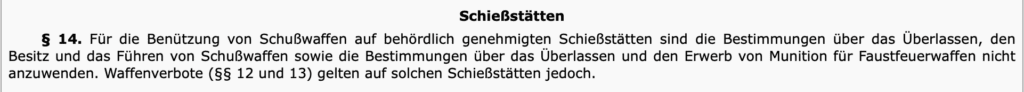 Der letzte Punkt umfasst demnach alle Schießstätten, wo im Rahmen gewerblicher Tätigkeiten Schusswaffen erprobt werden – etwa, wenn Sie in einem Waffengeschäft eine Schusswaffe kaufen und diese vorher testen möchten.